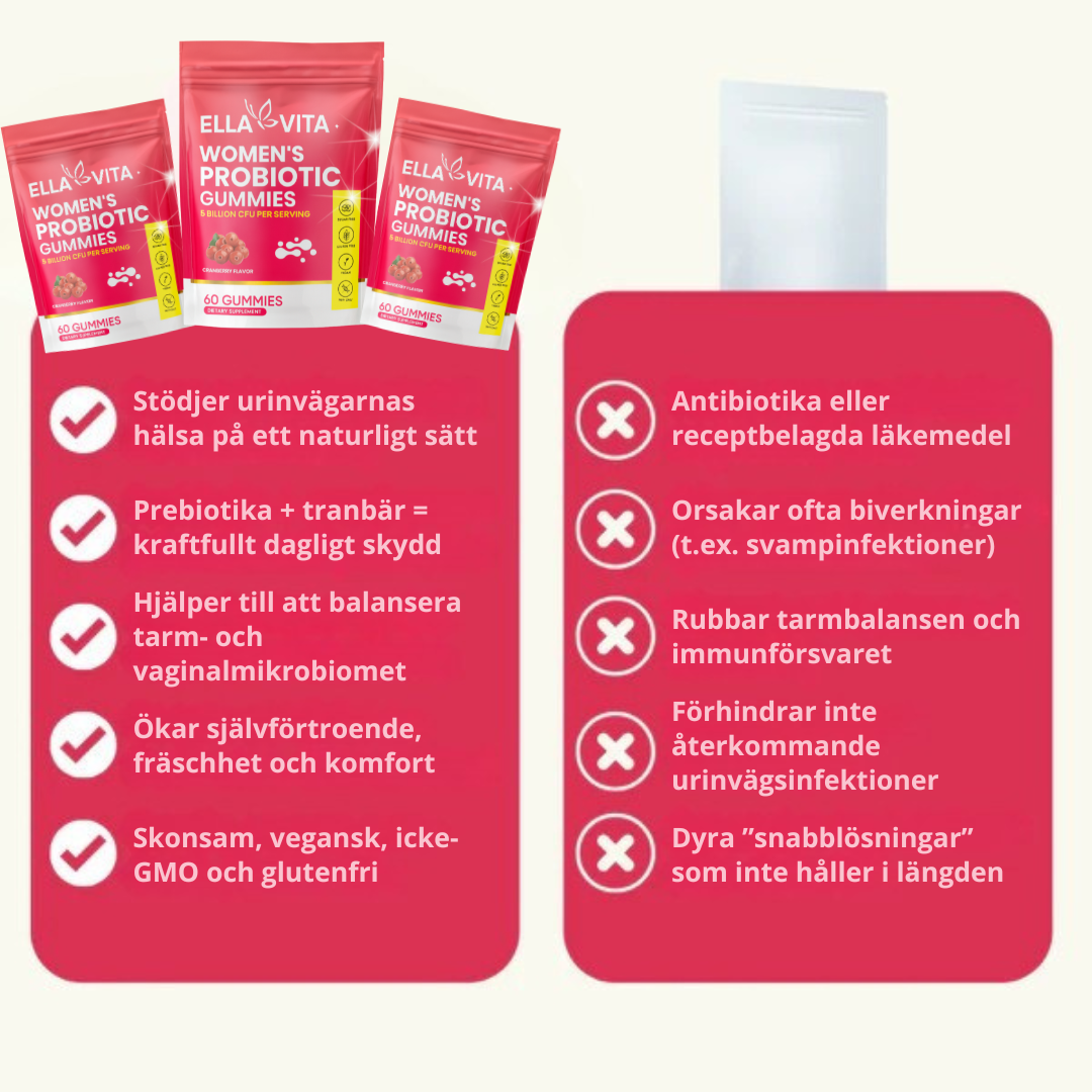 Ella Vita Cranberry Gummies är skonsamma och säkra, tillverkade med naturligt tranbärsextrakt och noggrant utvalda probiotiska stammar.