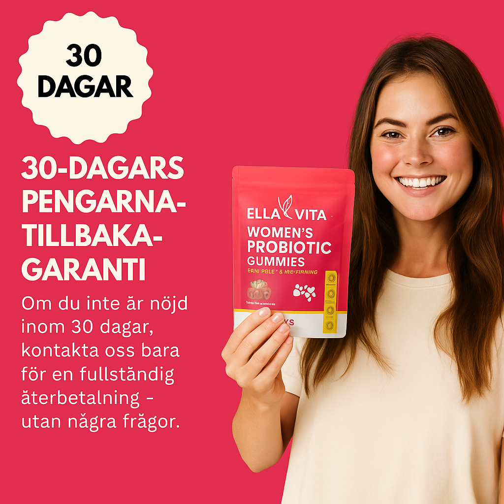 - Probiotika – återställer en frisk bakterieflora i mage och underliv.